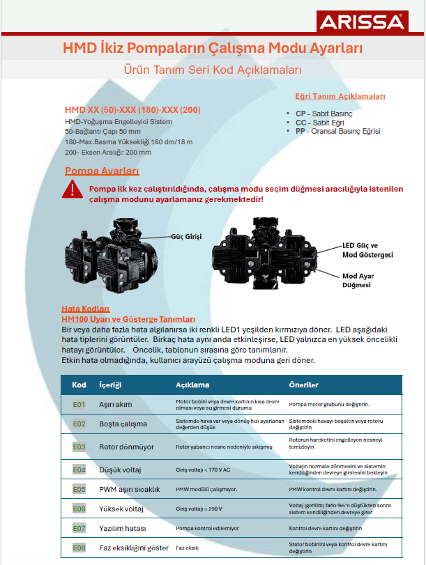 ARISSA HM-50-180/200 - DN50 (20mm) İKİZ TİP FREKANS KONVERTÖRLÜ SİRKÜLASYON POMPA