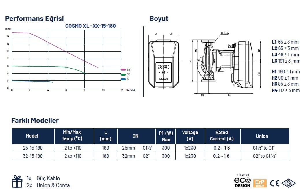 DUCA, COSMO-XL 32-15-180, DÖKÜM GÖVDELİ, FREKANS KONTROLLÜ SİRKÜLASYON POMPASI