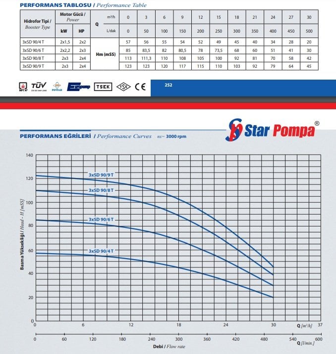 STAR 3xSD 90/8 T 3x4 HP 380V ÜÇ POMPALI PAKET HİDROFOR