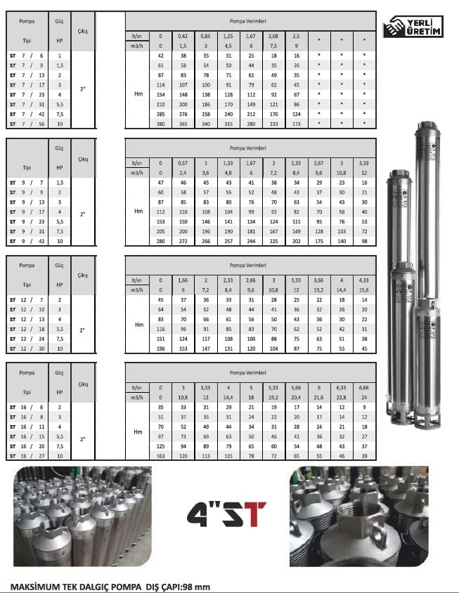 Öz Şafak ST 16/15 5.5 Hp 380V 4'' Dalgıç Pompa (Motor + Pompa)