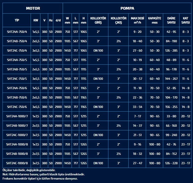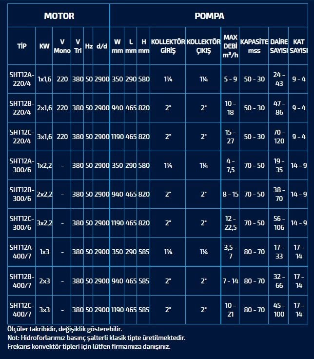 1- Hidrofor Pompası: Debi ve basma yüksekliklerine uygun olarak pompa seçilmelidir.